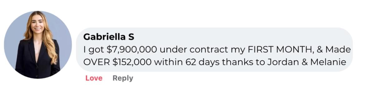 $7,900,000 Closed Earning $152,000 In 62 Days: Gabriella was on the edge of quitting real estate after 6 months of zero deals, and within her first month using our system